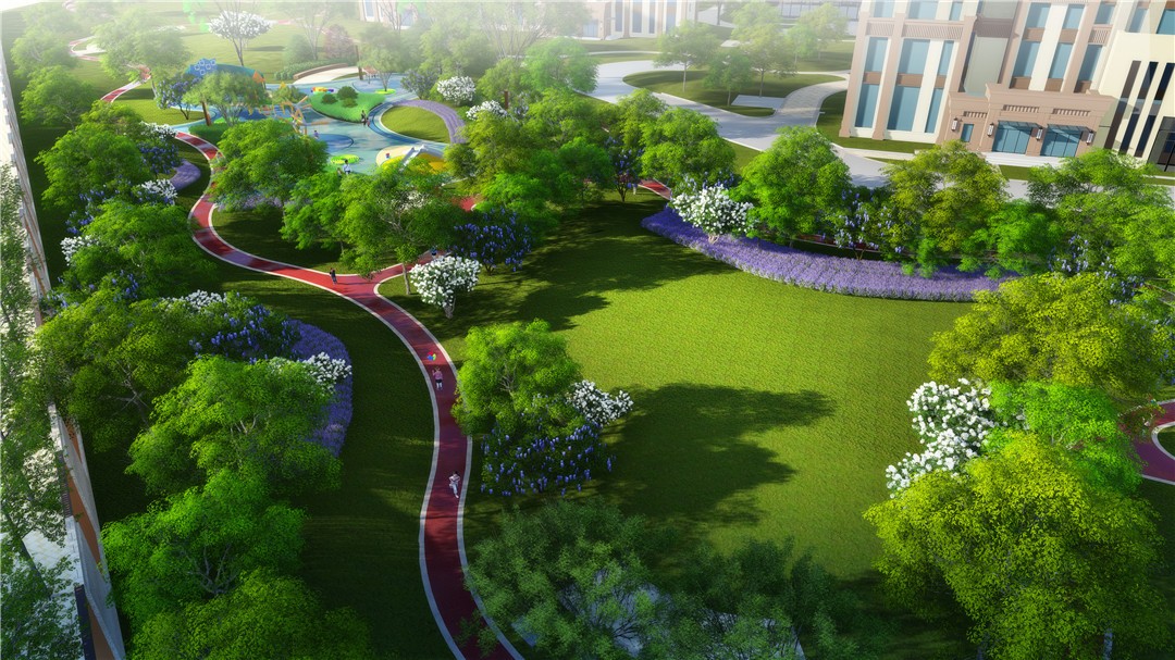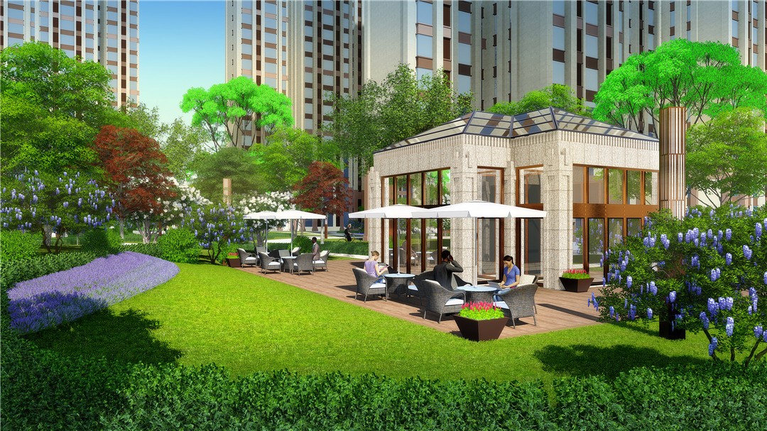 商業(yè)及綜合辦公樓為現(xiàn)代風(fēng)格,材質(zhì)為米色石材灰色鋁板結(jié)合玻璃幕墻,住宅為ARTDECO風(fēng)格,材質(zhì)以米灰色涂料和深棕色石材為主,景觀在材質(zhì)上與建筑相呼應(yīng)。