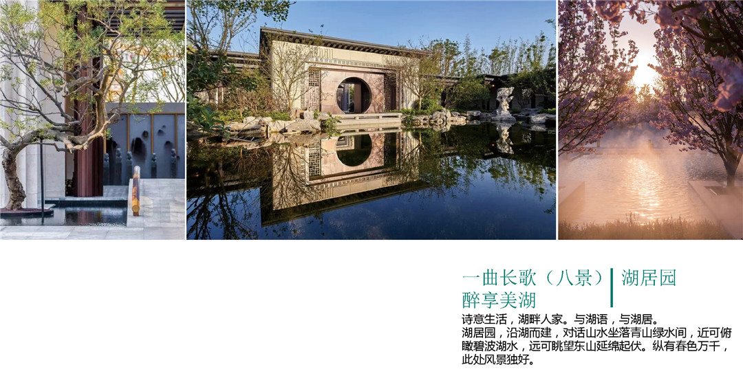規劃入口園、鄰里園、山水園、湖居園四大景觀組團,貫穿客家文化元素、滲透山水寫意,打造祥光瑞開、別有洞天、曲廊春曉、童年秋日好、共祝倫觴五景、一曲長歌八景、醉享美湖等美輪美奐的園林意境。